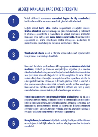 3 Vocabularul istoric plasat la sfârșitul manualului oferă oportunitatea
