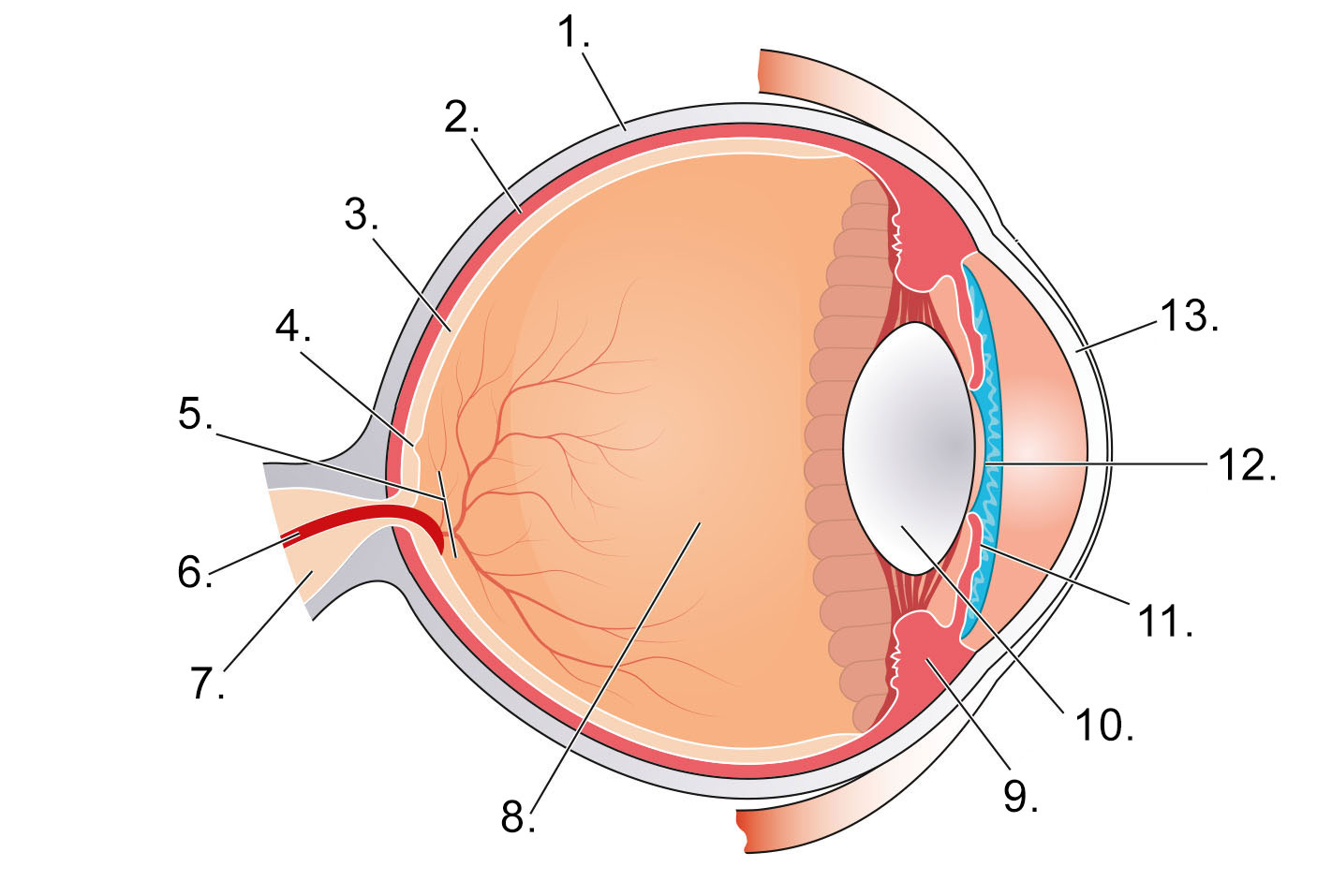 Helyezd a szemgolyó alkotóinak megnevezéseit a megfelelő helyre!