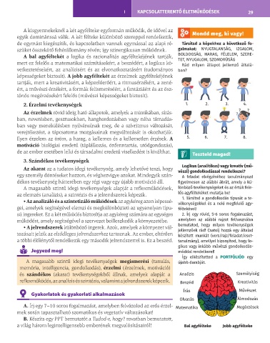 memória, intelligencia, gondolkodás), érzelmi (érzelmek, motiváció)