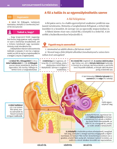 található: a kalapács 9 mm (ez a leghosz- 2. Nevezd meg a fület felépítő alkotókat (tanulmányozd a színes kere-