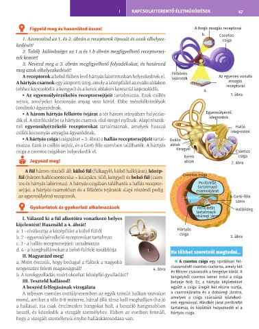1. Azonosítsd az 1. és 2. ábrán a receptorok típusát és azok elhelyez- csiga