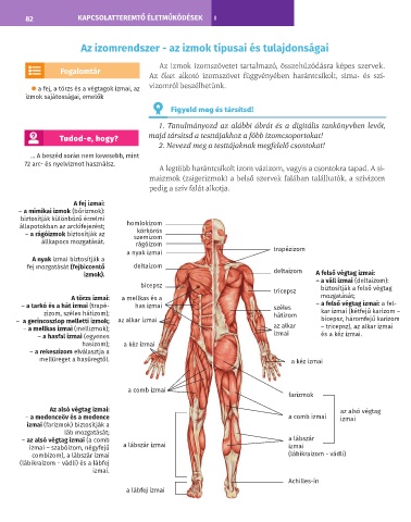 – a tarkó és a hát izmai (trapé- has izmai széles – a felső végtag izmai: a fel-