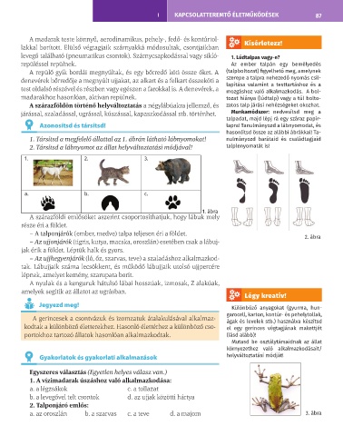 – Az ujjonjárók (tigris, kutya, macska, oroszlán) esetében csak a lábuj-