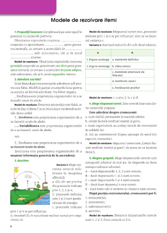 _ Ereditatea este proprietatea organismelor de a se Model de rezolvare: 1. a și e; 2. b, c și d.