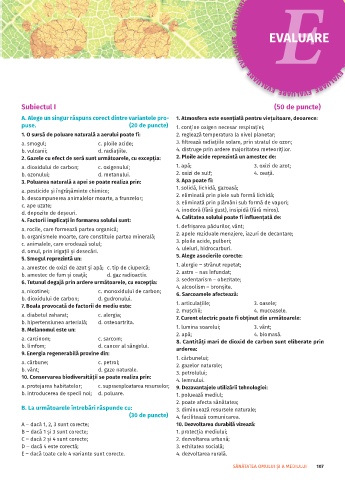 a. smogul; c. ploile acide; 3. filtrează radiațiile solare, prin stratul de ozon;
