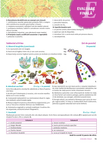 B. Adevărat sau fals? (7 x 2 p. = 14 puncte) 5. Apa reprezintă cea mai mare parte a corpului viețuitoare-