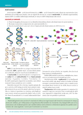 1. Observă imaginea de mai jos (2.) și identifică deosebirea dintre cele două tipuri de acizi nucleici.