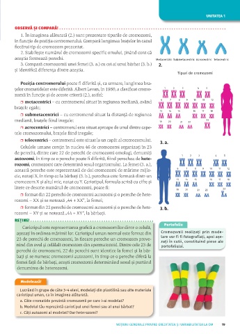3. Compară cromozomii unei femei (3. a.) cu cei ai unui bărbat (3. b.) 2.