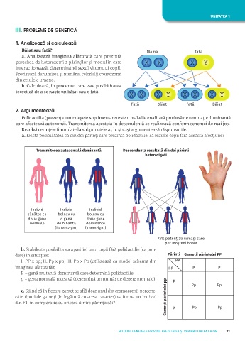 b. Stabilește posibilitatea apariției unor copii fără polidactilie (ca pon-