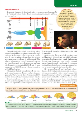 3,5–2,5 mil. ani 2,8 mil.–1,5 mil. ani 2 mil.–300 000 ani 250 000–30 000 ani înainte cu 130 000 ani America CRITICĂ! rat strămoșul omului modern. CRITICĂ!