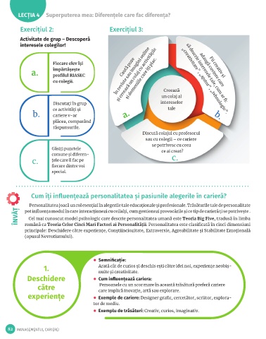 a. profilul RIASEC și creează un colaj cu activitățile să descrie interesele tale, cum ar fi: