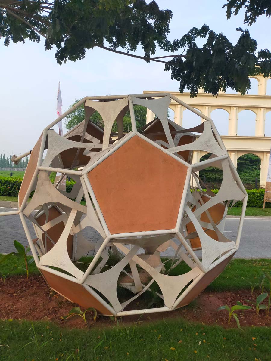 Sculptură geometrică în forma de icosaedru trunchiat, amplasată în aer liber - Jakarta, Indonezia