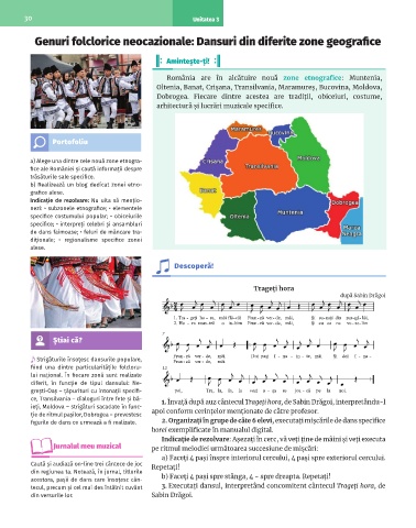 ce, Transilvania – dialoguri între fete și bă- 1. Învață după auz cântecul Trageți hora, de Sabin Drăgoi, interpretându-l