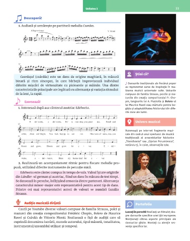 1. Intonează după auz cântecul austriac Edelweiss. găția și adaptabilitatea folclorului din dife-