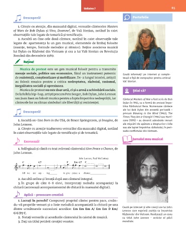 2. Notați versurile și acordurile cântecului în caietul de muzică. cu titlul John Lennon − activist al păcii