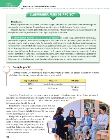 proiect, în mod pozitiv sau negativ. De exemplu, bibliotecara/ul școlii, dacă proiectul presupune