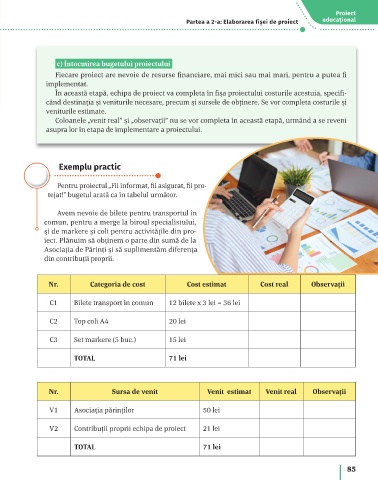 În această etapă, echipa de proiect va completa în fișa proiectului costurile acestuia, specifi-