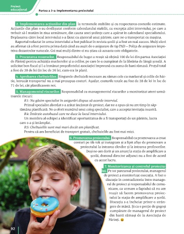 2. Implementarea acțiunilor din plan la termenele stabilite și cu respectarea costurile estimate.