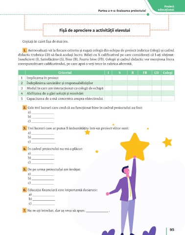 1. Autoevaluați-vă la fiecare criteriu și rugați colegii din echipa de proiect (rubrica Colegi) și cadrul
