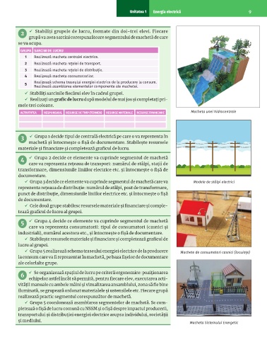 grupă va avea sarcini corespunzătoare segmentului de machetă de care