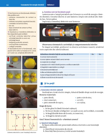 • oxidarea conexiunilor de contact cu rie electrică. Circuitul electric al unei lanterne simple este alcătuit din: bate-