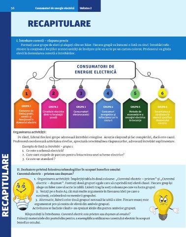 Formați șase grupe de elevi și alegeți câte un lider. Fiecare grupă va întocmi o listă cu cinci întrebări refe-