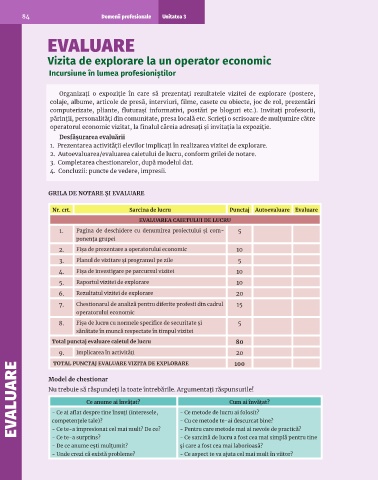 2. Autoevaluarea/evaluarea caietului de lucru, conform grilei de notare.