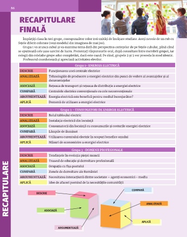 Împărțiți clasa în trei grupe, corespunzător celor trei unități de învățare studiate. Aveți nevoie de un cub cu
