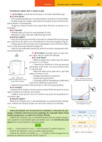 UNITATEA 3 Fenomene optice – Refracția luminii 107