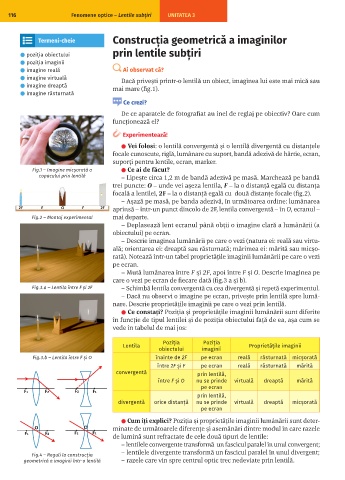 116 Fenomene optice – Lentile subțiri UNITATEA 3
