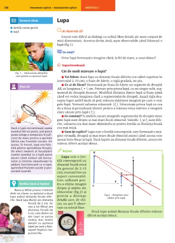 soarelui într-un punct, acel punct ⚫ Cum îți explici? Lupa este o lentilă convergentă, care formează o ima-