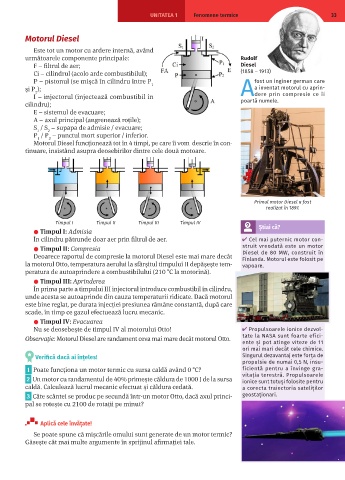 Motorul Diesel funcţionează tot în 4 timpi, pe care îi vom descrie în con-