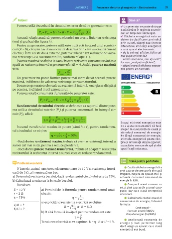 egală cu rezistența internă a generatorului (R = r). Astfel, puterea maximă – săgețile arată eficiența energe-