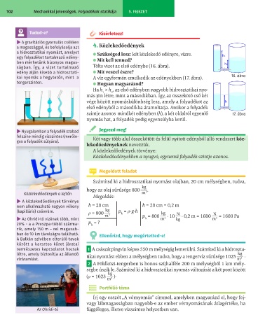 102 Mechanikai jelenségek. Folyadékok statikája 5. FEJEZET