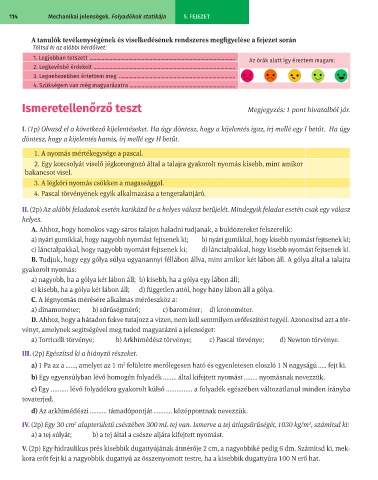 114 Mechanikai jelenségek. Folyadékok statikája 5. FEJEZET