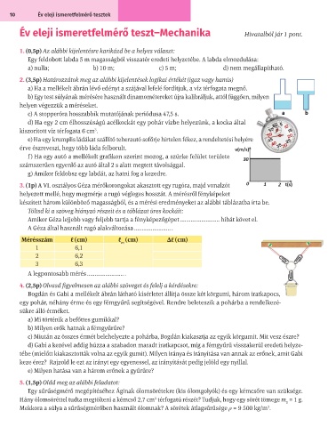 Év eleji ismeretfelmérő teszt‒Mechanika Hivatalból jár 1 pont�