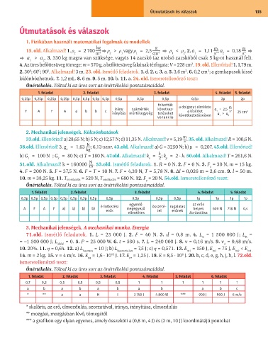 10. m = 38,25 kg. 11. T ereszkedés = 520 N, T emelkedés = 680 N. 12. F = 20 N. 54.old. Ismeretellenőrző teszt: