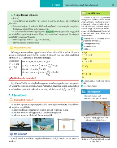 méter segítségével, amely 1,6 N-t mutat. A tolltartó és a pad közti súrlódási F = m ∙ g (N)