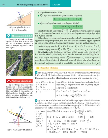van: a párhuzamos összetevő mozgatja, a merőleges összetevő pedig a lejtő-
