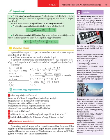► A teljesítmény meghatározása. A teljesítmény (jele P) skaláris fizikai ▶ A kilowattóra (kWh) nem a tel-