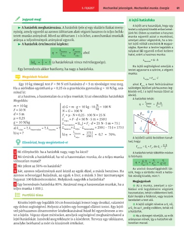 ► A hatásfok meghatározása. A hatásfok (jele η) egy skaláris fizikai meny- testet a súlyánál kisebb erővel emel-