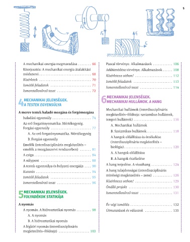 A mechanikai energia megmaradása . . . . . . . . 66 Pascal törvénye. Alkalmazások . . . . . . . . . . . . 106