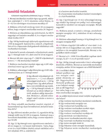 berendezés hatásfokát, tudva, hogy a motor teljesítmé- h) Egy motor mechanikai munkát végez.