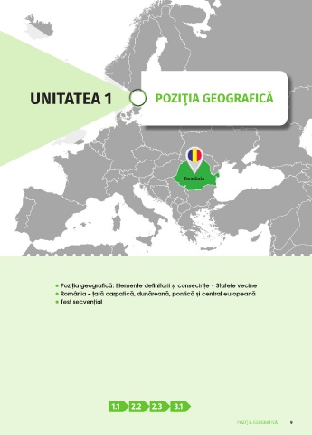 UNITATEA 1 POZIŢIA GEOGRAFICĂ România l Poziţia geografică: Elemente definitorii şi consecinţe • Statele vecine l România – ţară carpatică, dunăreană, pontică şi central europeană l Test secvențial 1 .1 2 .2 2 .3 3 .1 POZIŢIA GEOGRAFICĂ 9