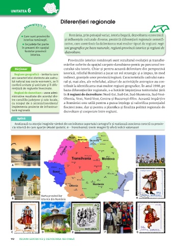Analizează cu atenție imaginile-simbol din vecinătatea suportului cartografic și realizează asocierea corectă cu provin-