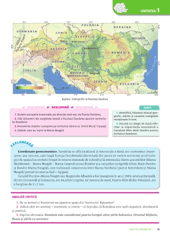1 . Statele europene traversate, pe direcție vest-est, de fluviul Dunărea. grafic, mările şi canalele navigabile