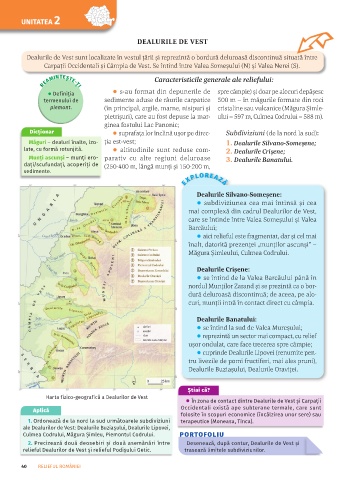 relieful Dealurilor de Vest şi relieful Podişului Getic. trasează limitele subdiviziunilor.