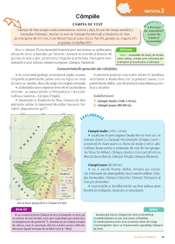 l La contactul dintre Câmpia de Vest şi Dealurile de Vest, pe Analizează harta Câmpiei de Vest şi identifică: