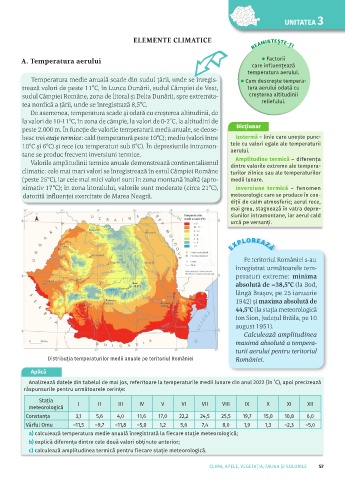 Valorile amplitudinii termice anuale demonstrează continentalismul dintre valorile extreme ale tempera-