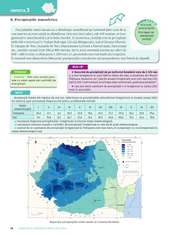 Repartiția precipitațiilor medii anuale pe teritoriul României